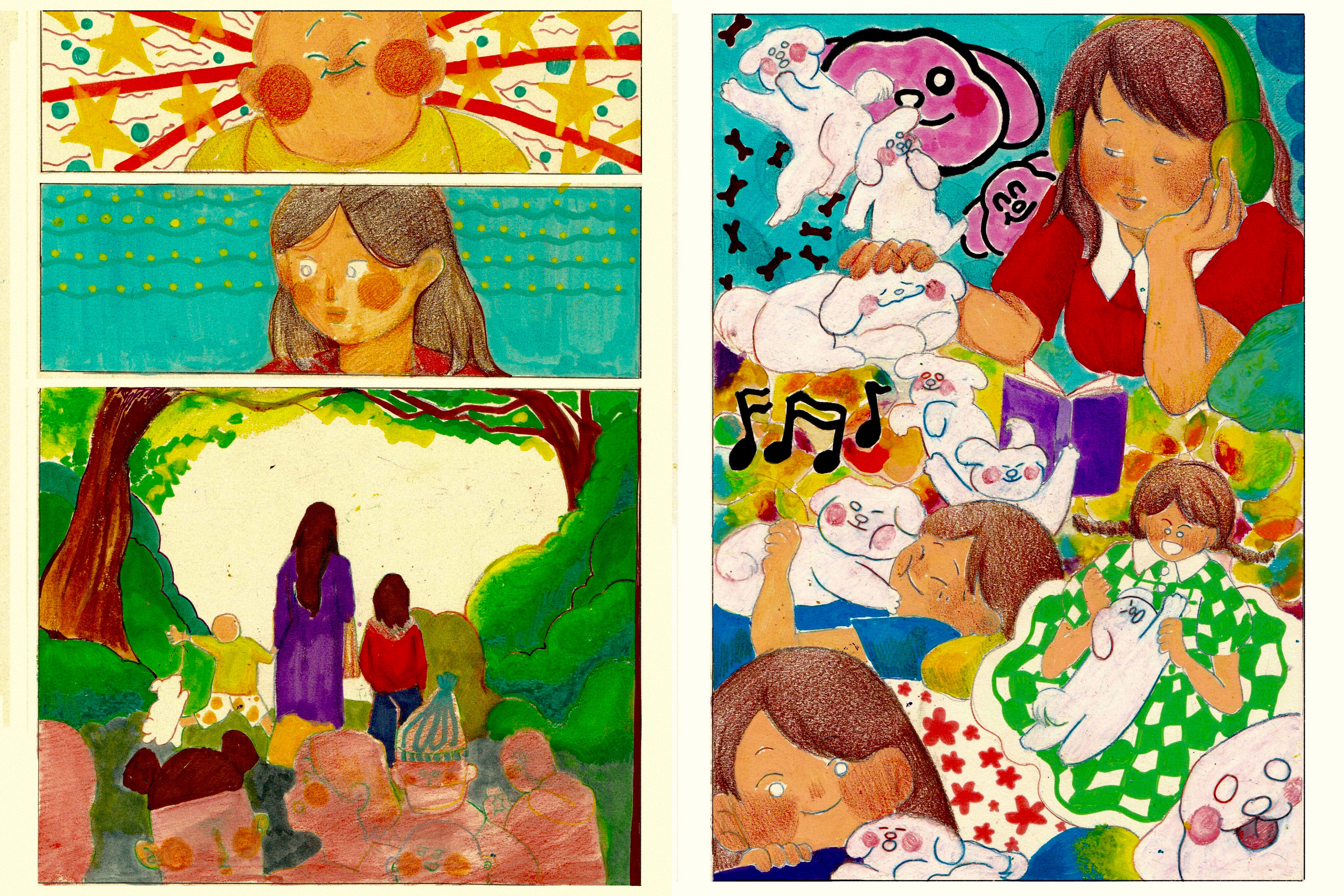 Watercolor, Colored Pencils, Crayon
